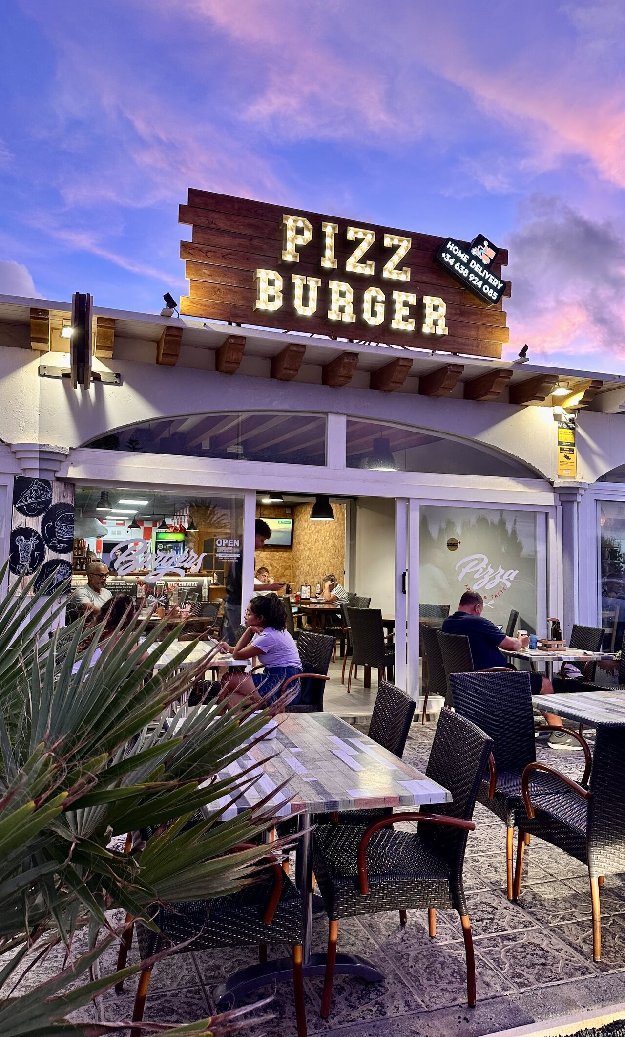 A place where you can find many variety of pizzas , burgers and also a combination of the two favourites a burger wraped in pizzadough , our signiture dish is called the “PizzBurger” .
